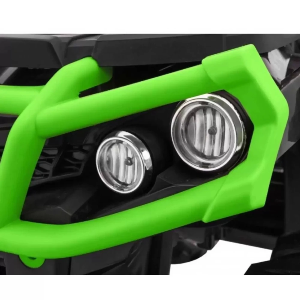 Электроквадроцикл R-Wings ATV с пультом управления 2.4G Green оснащается четверкой прорезиненных колеса, при помощи которых можно без проблем справляться со значительными дорожными препятствиями. Чтобы процесс поездки для ребенка был ещё интереснее, создатели модели решили добавить задним и передним фарам декоративное освещение. Кататься на электрическом квадроцикле без подзарядки можно на протяжении двух часов благодаря емкостному аккумулятору.