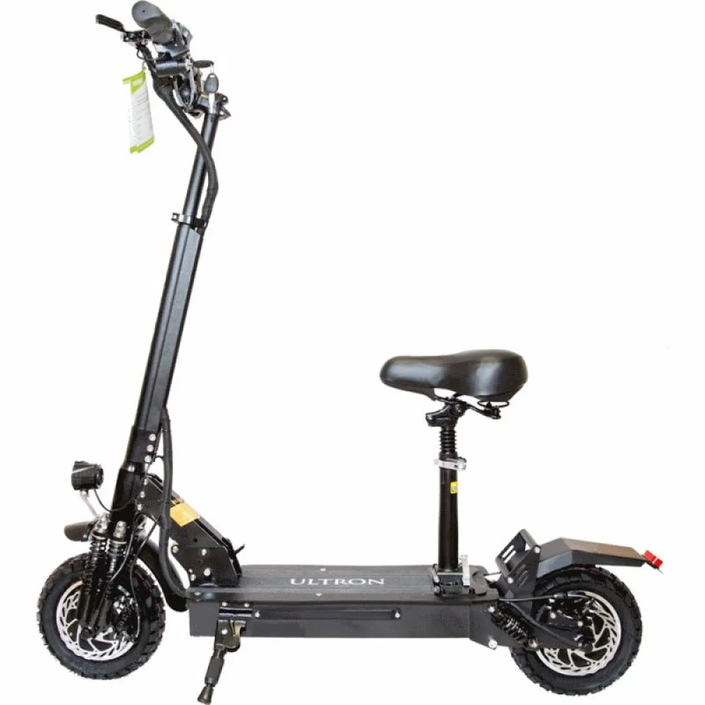 Электросамокат ULTRON T10 - современная актуальная модель для поездок к друзьям или по магазинам. Имеет удобное сидение, на котором размещается водитель, есть так же бортовой компьютер. Самокат так же оснащен двумя устойчивыми колесами, позволяющими ему ездить и по лесной тропе, и по проселочной дороге. На таком аппарате вы без проблем окажитесь в гостях у лучшей подруге, или на встрече с друзьями. Пользоваться такой моделью могут люди, для которых важна мобильность, скорость и комфортабельность. Такой транспорт можно смело назвать «транспортом будущего» за свою скорость, неуставаемость, компактность. Самое главное не забывать заряжать, иначе придется идти пешком.