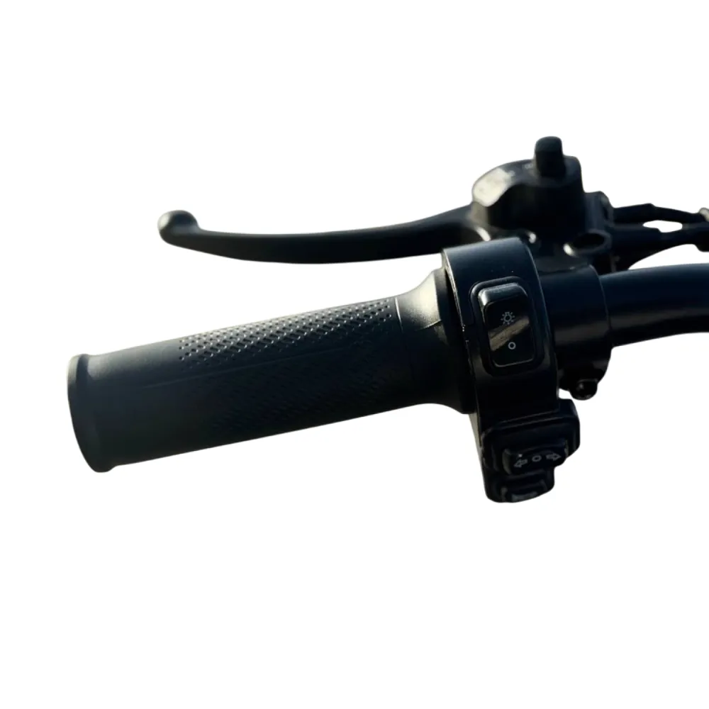 • Мощный мотор 1000 Вт обеспечивает максимальную скорость до 40 км/ч, что позволяет легко преодолевать городские расстояния и подъемы.