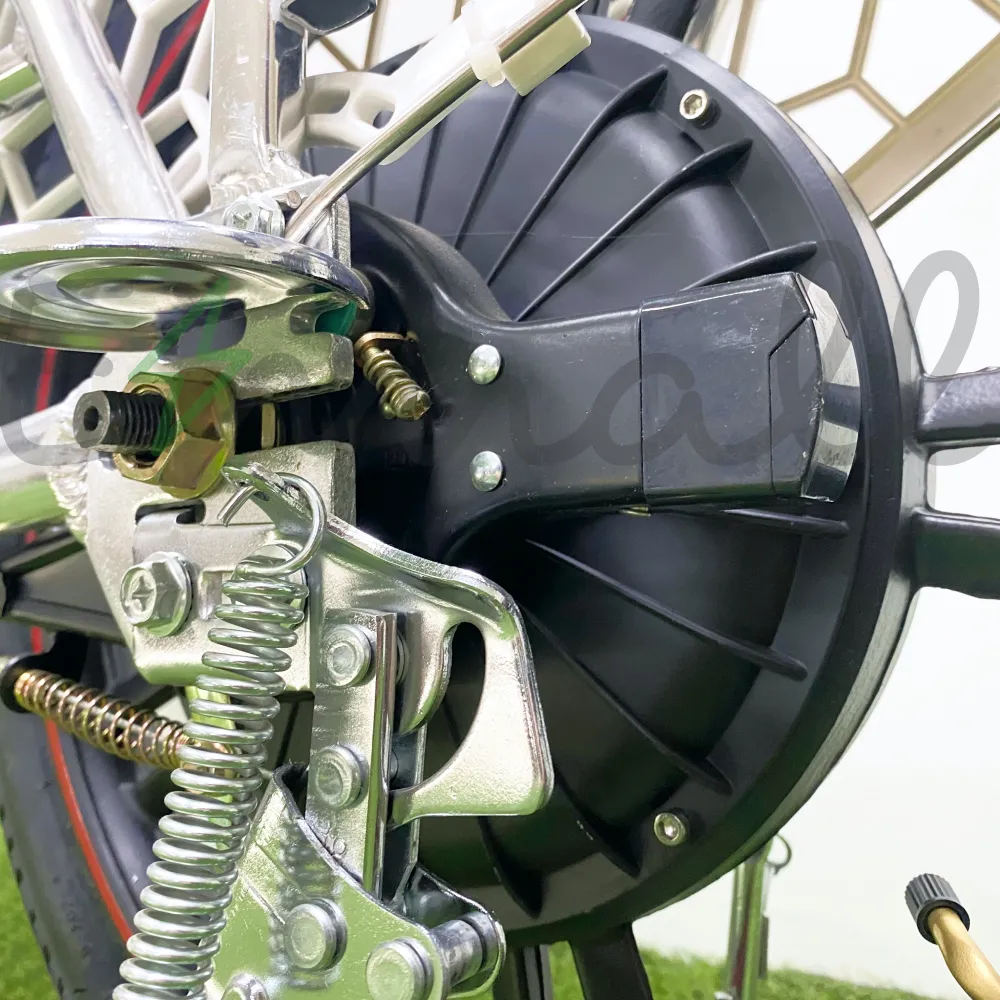 Штатный аккумулятор полностью заряжается за 6 часов, дополнительный, в силу большей ёмкости, примерно за 7-8 часов, что позволяет использовать велогибрид на максимум его возможностей каждый день. Привод гибрида состоит из механической системы (односкоростная трансмиссия) и электрической (электродвигатель). Двигатель расположен в заднем колесе и способен разгонять велосипед до 50 км/ч. Тормозная система велосипеда практичная и надёжная. Она представляет собой два тормоза (передний и задний) барабанной конструкции. Посадочное место велосипеда широкое и мягкое, а на раме имеется место для ног, чтобы не напрягать их, двигаясь на силах электродвигателя.