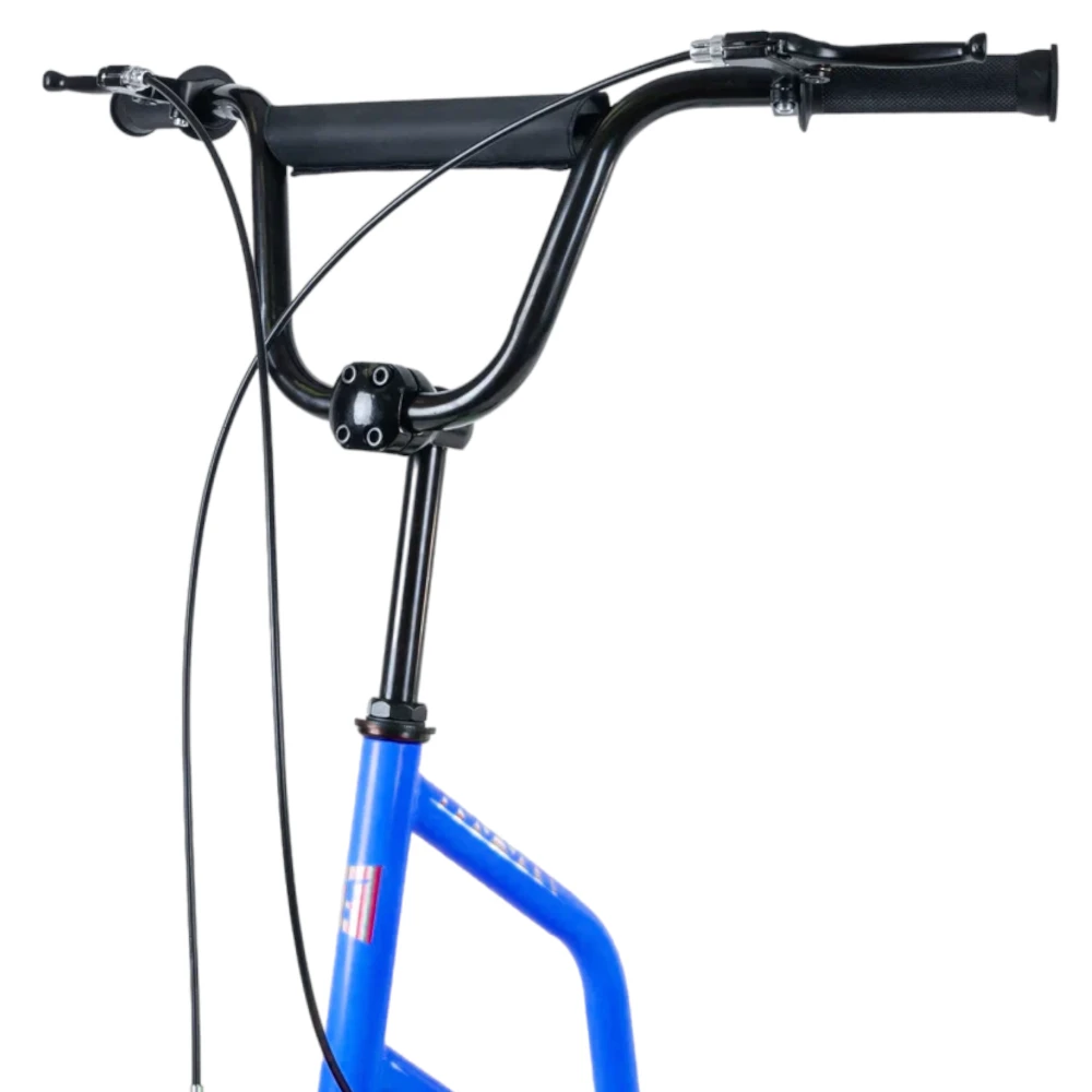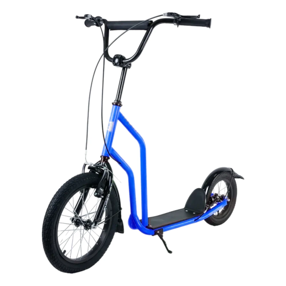 Tech Team Super Jet 700 2024 года в ярком синем цвете - это городской самокат с уникальным дизайном, напоминающим велосипед. Большое переднее колесо диаметром 406 мм и заднее колесо диаметром 305 мм обеспечивают отличную устойчивость и комфорт при езде. Ободные тормоза и велосипедный руль с двумя ручками тормоза обеспечивают надежное торможение и удобное управление. Максимальная нагрузка до 100 кг позволяет использовать самокат людям разного веса. Рама из алюминия делает самокат легким и прочным, его вес составляет всего 8,1 кг. Этот самокат идеально подходит для активных городских поездок.